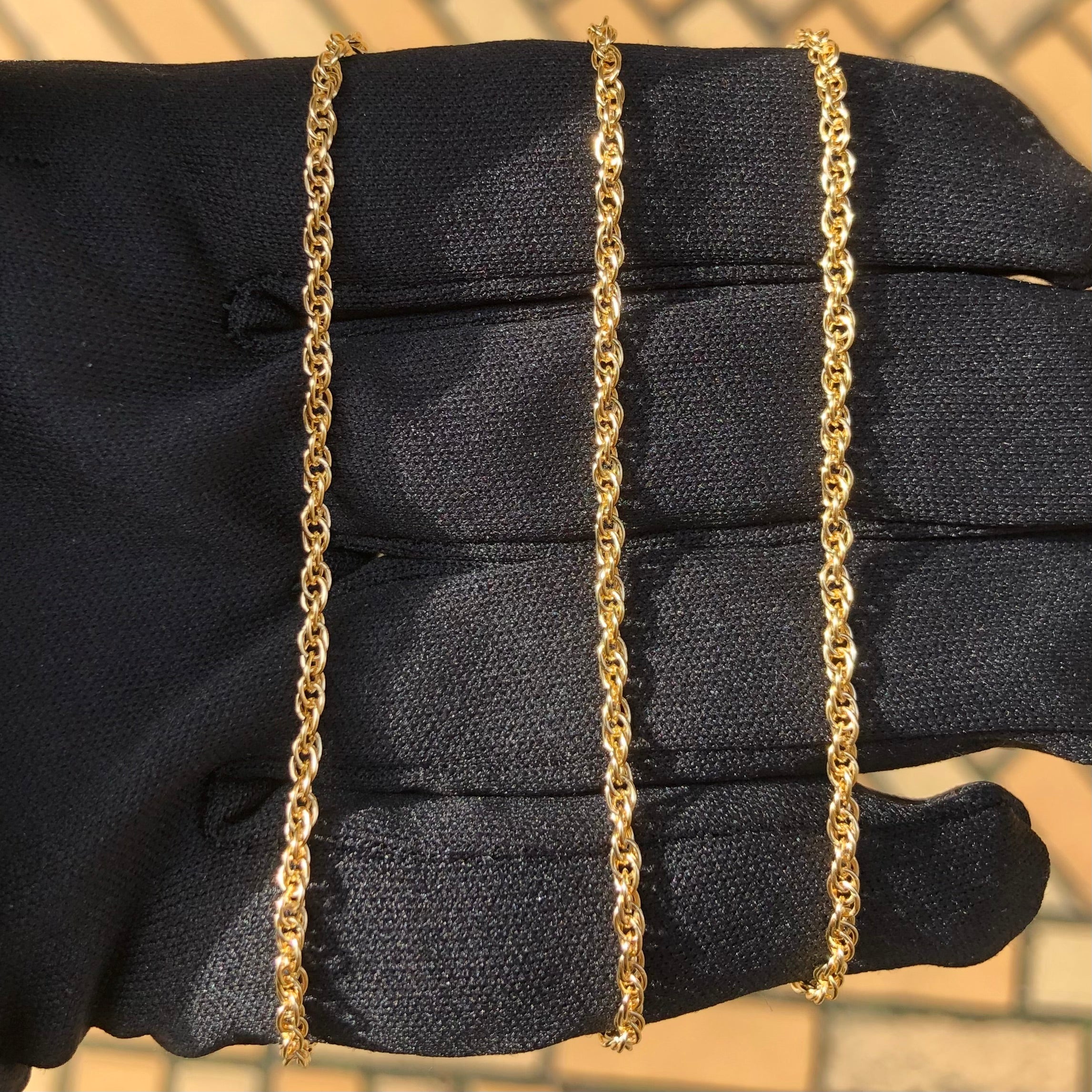 Classic Men or Women's Real 1/20 14K Yellow Gold GF Rope Bracelet. This gold rope bracelet is 7 inches in length, approx. 2 grams in weight and 3 mm wide. Includes a custom velvet jewelry pouch and certificate of authenticity card verifying this fine jewelry is made of 1/20 14K Gold GF.